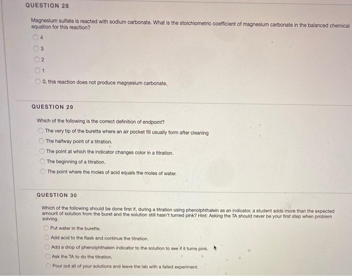 Solved Question 28 Magnesium Sulfate Is Reacted With Sodium Chegg Com